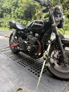 先日、裾野市須山地区にてオートバイの単独転倒事故が発生し、レッカー要請をいただきました。今回はその現場での経験を通じて、私たちロードサービスのプロが感じた「装備の大切さ」についてお話ししたいと思います。